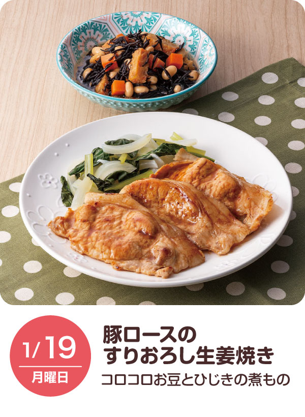 9/25(木)定番・楽定番「豚肉の西京漬焼き/くずし豆腐の三色あえ・青菜(小松菜)の和風スープ」