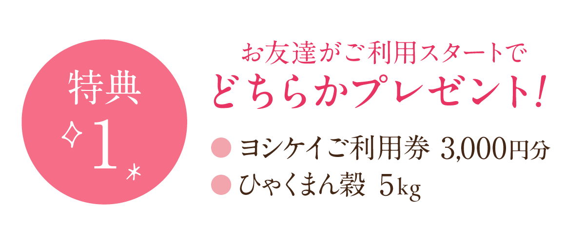 お友達がヨシケイのご利用をスタートされたら、お互いに特典ゲット!